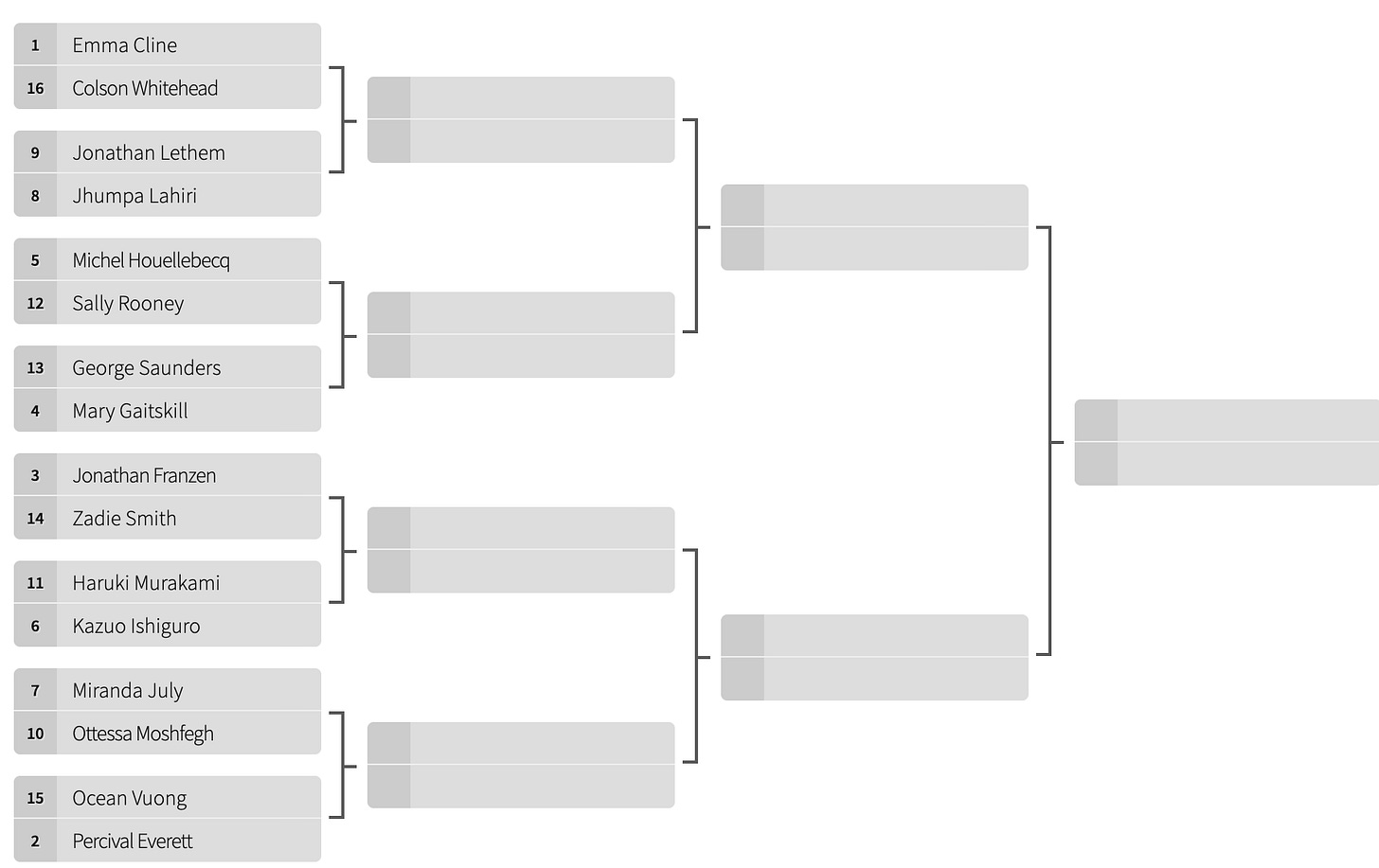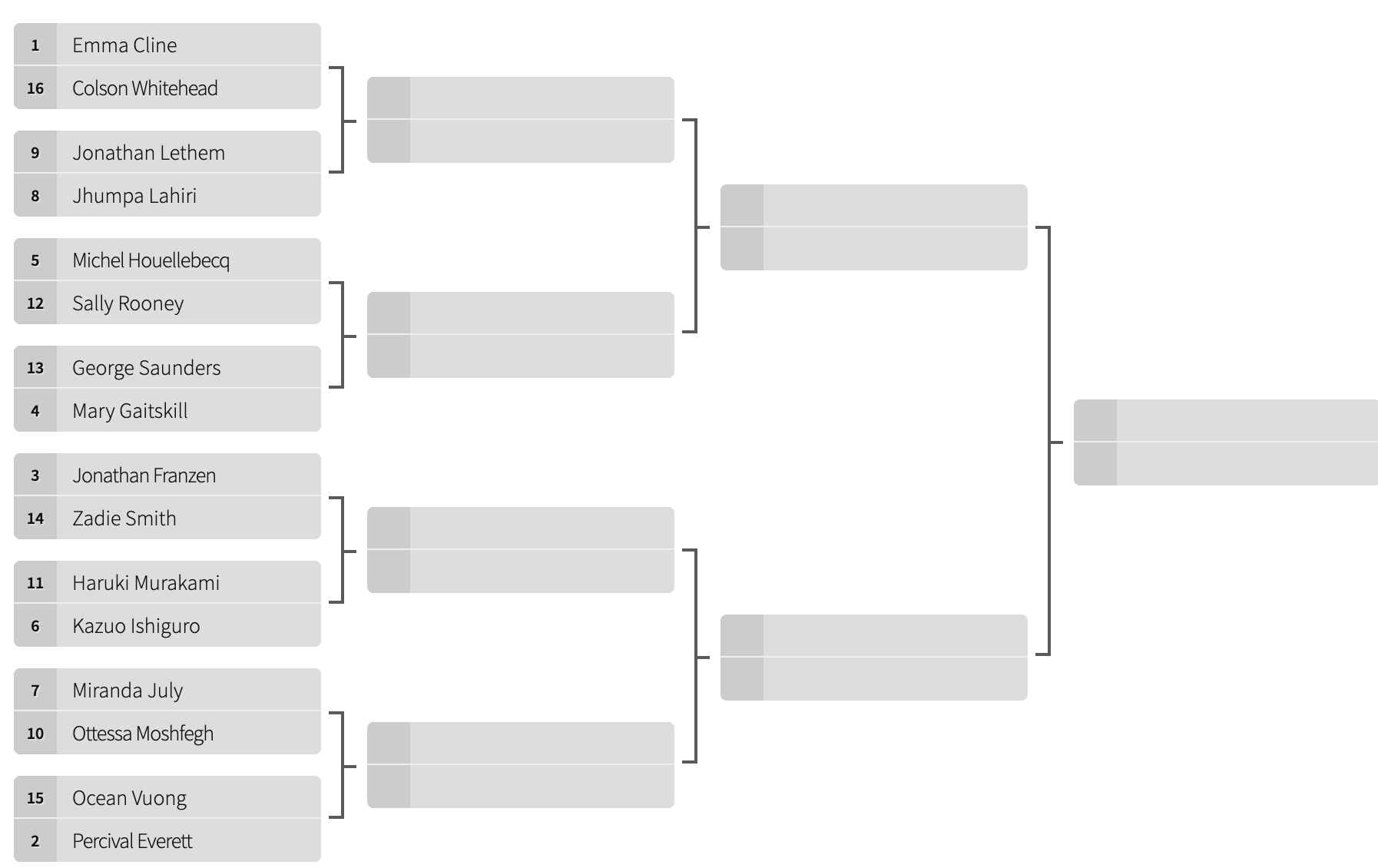 The first event in The Punters’ Page is The Writers’ Cup. It’s a single-elimination tournament of 16 top fiction writers. Here is the bracket: